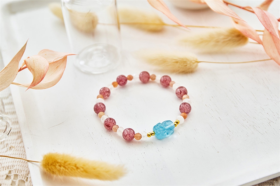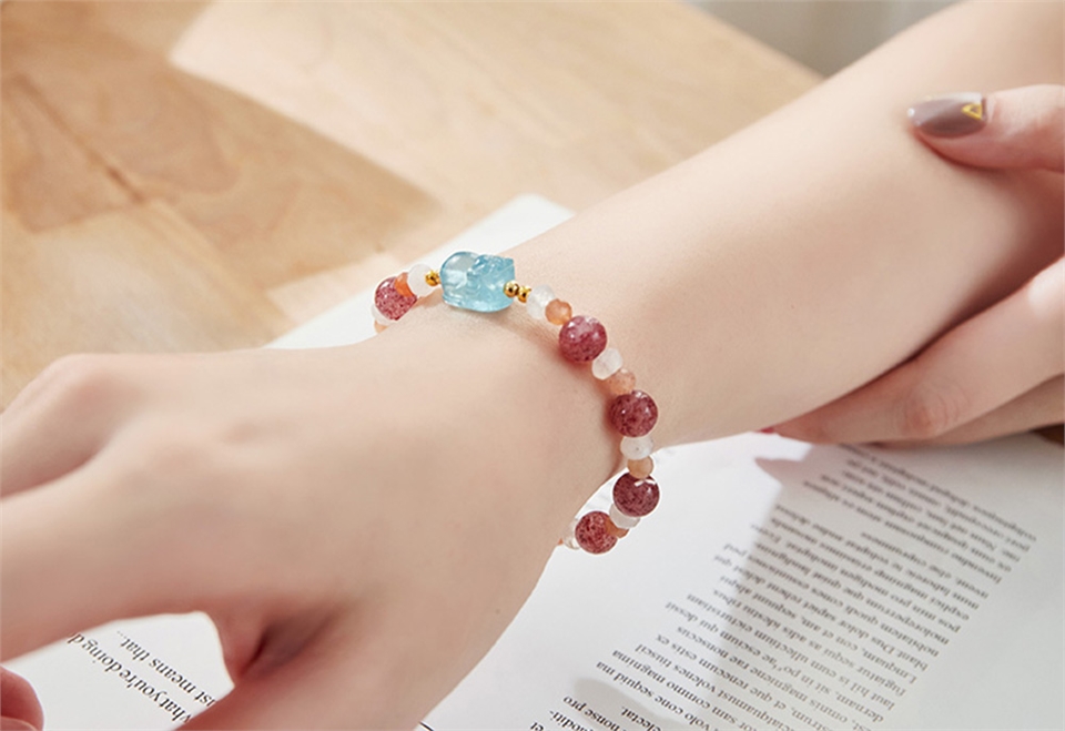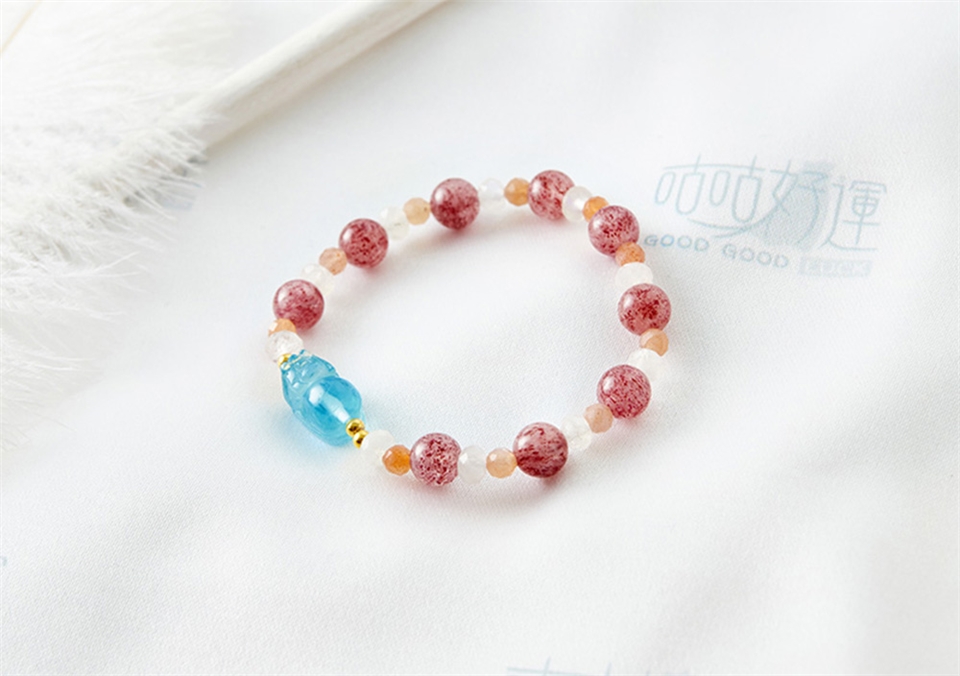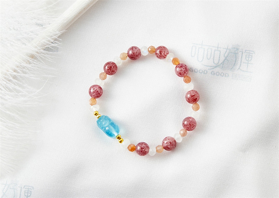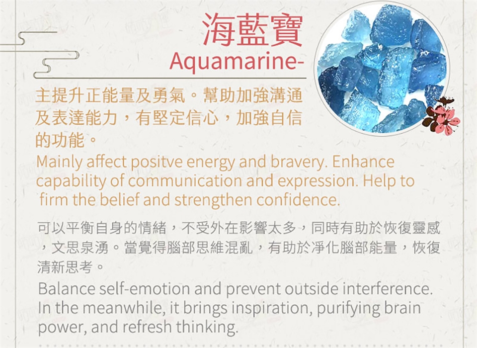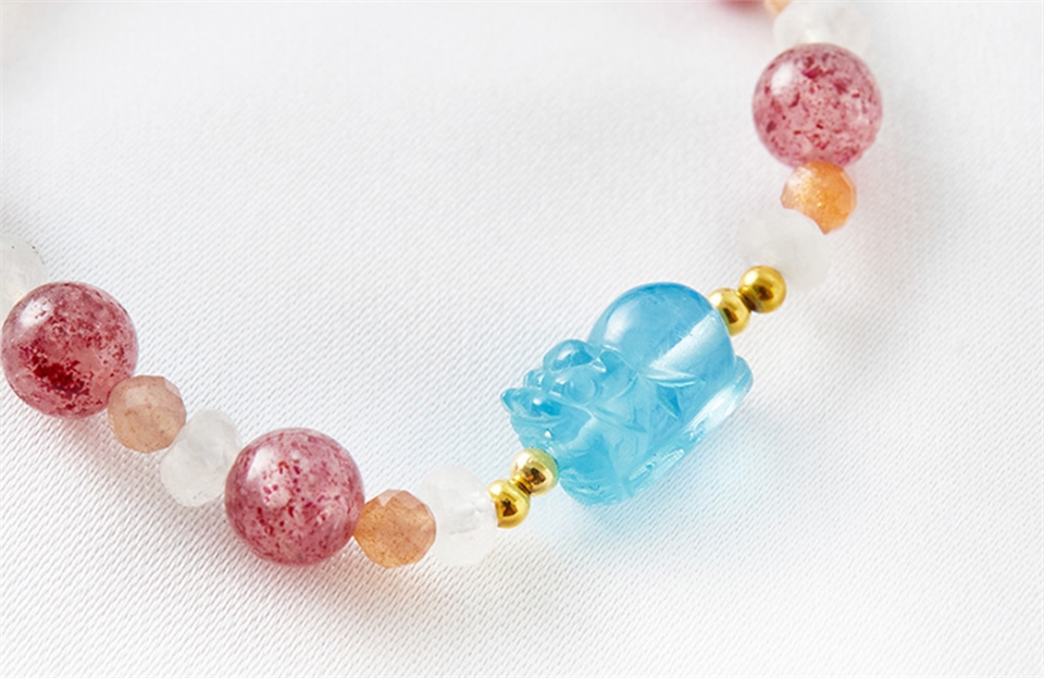 幫自己找到十足的勇氣吧!看待事情的視角,決定人生的高度,如果您願意,一切都會變得更好。海藍寶幫助提升自信心、招財運、加強判斷力、靈感來源,草莓晶幫助好人緣、人際關係補足、月光石穩定情緒,貔貅能幫助招財納福,咬財,達到整體運勢提升。