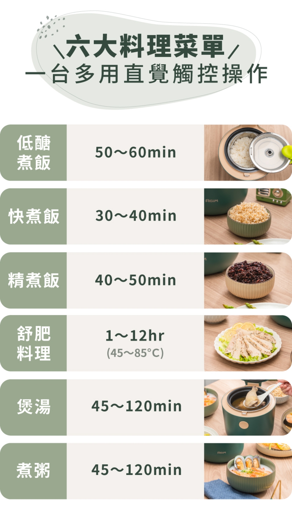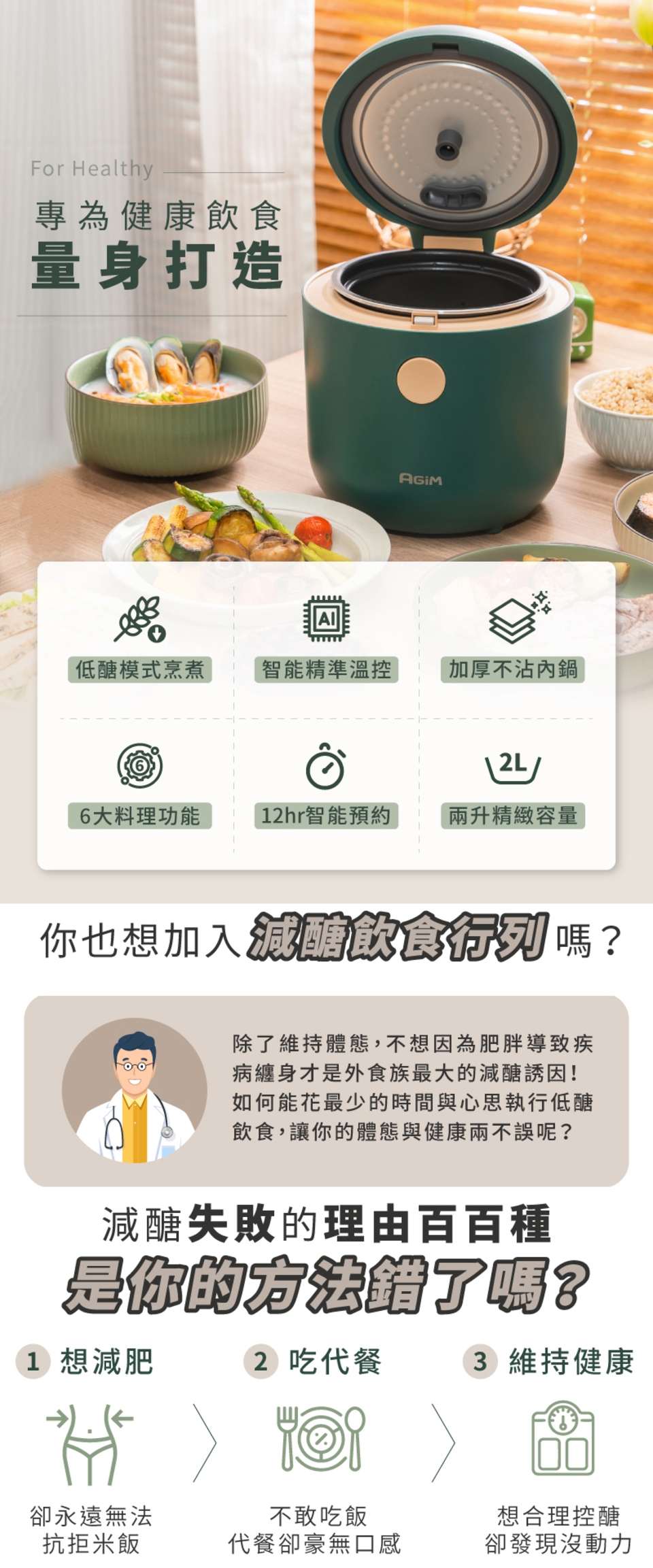 Q:AGiM減醣舒肥電子鍋,減醣模式可以煮五穀雜糧飯、糙米飯嗎?需要泡水?水量要自己調整嗎?