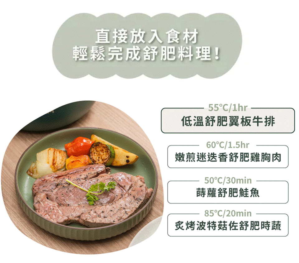 ● 舒肥精準控溫,一鍵搞定軟嫩多汁