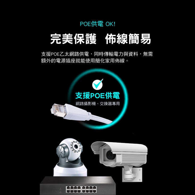 ◎支援PoE供電簡化佈線,IPCAM專用