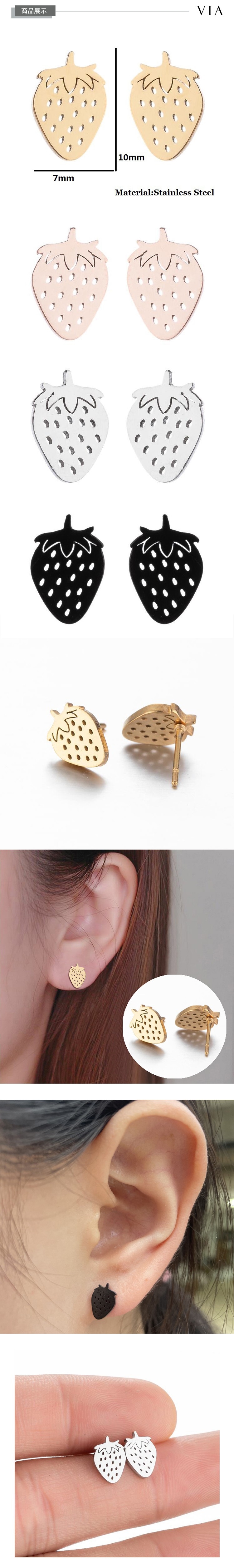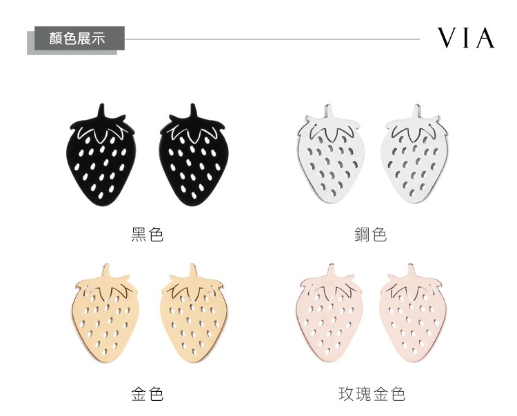 【VIA】植物系列 甜蜜小草莓造型白鋼耳釘 造型耳釘 鋼色
