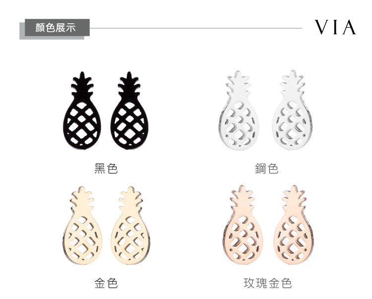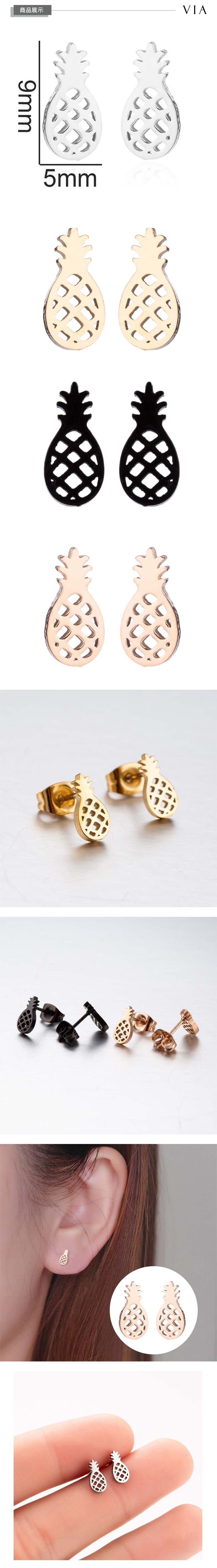 【VIA】植物系列 縷空小鳳梨造型白鋼耳釘 造型耳釘 鋼色