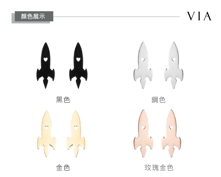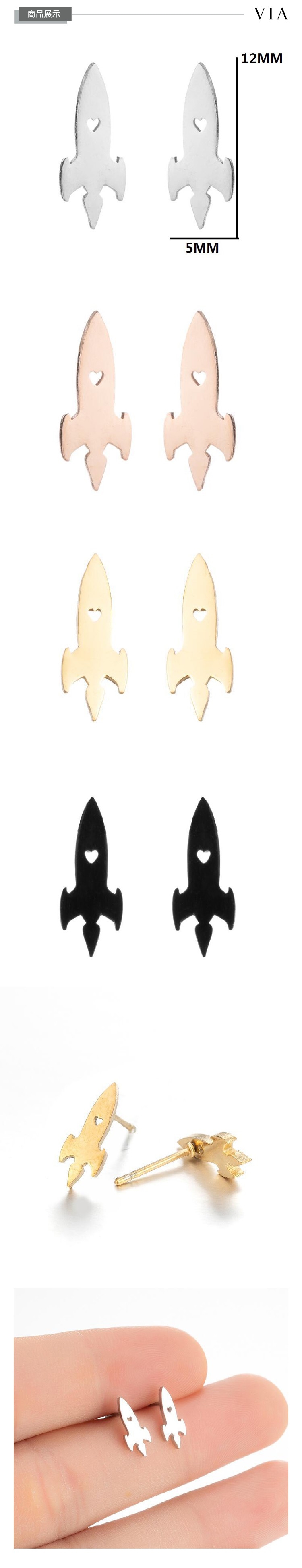 【VIA】星空系列 愛心火箭造型白鋼耳釘 造型耳釘 鋼色