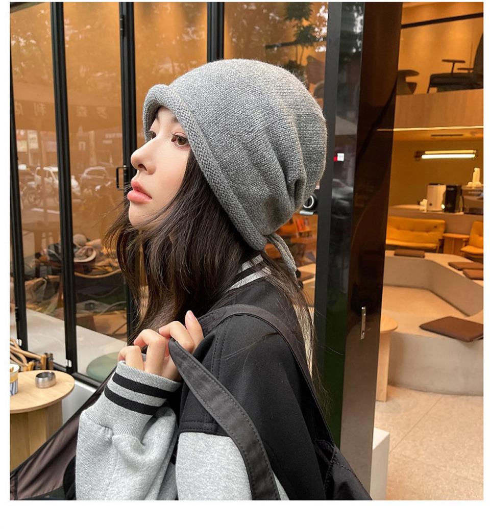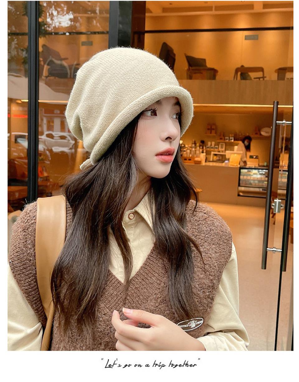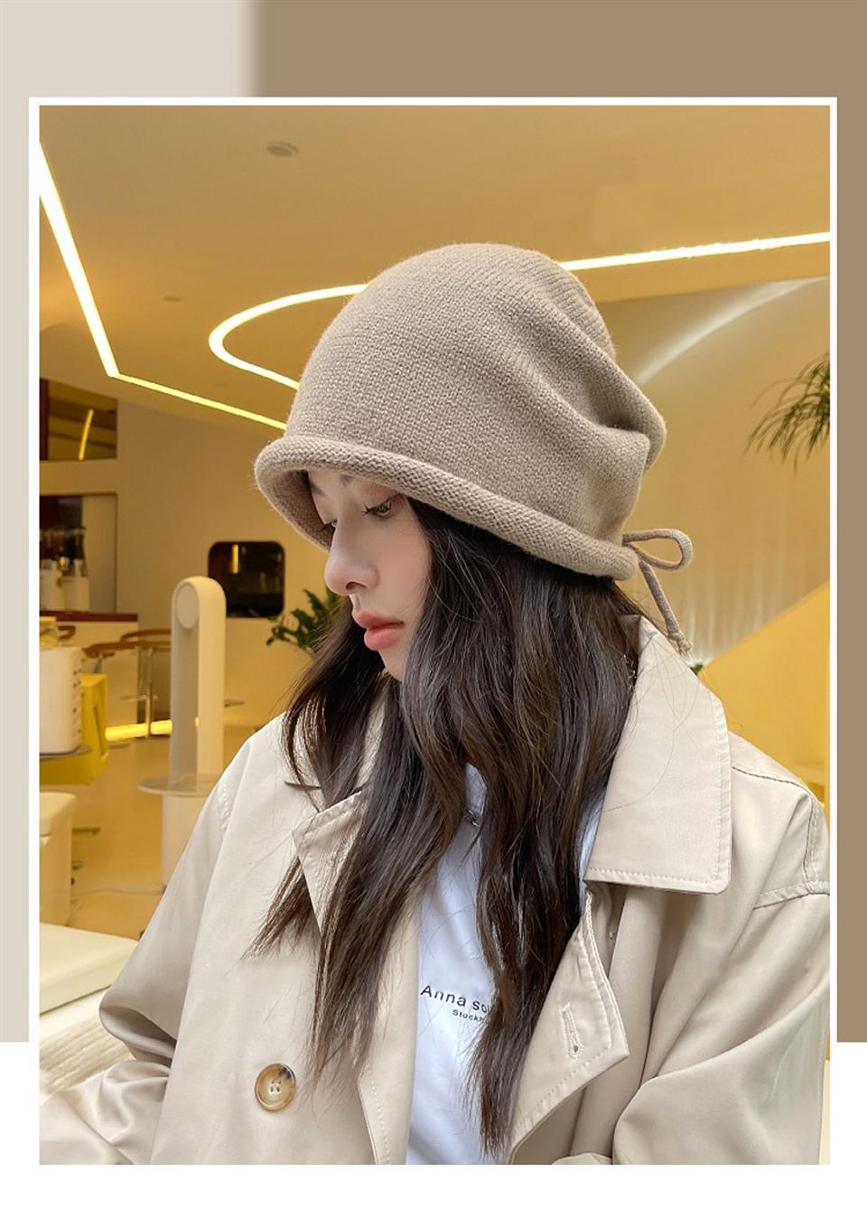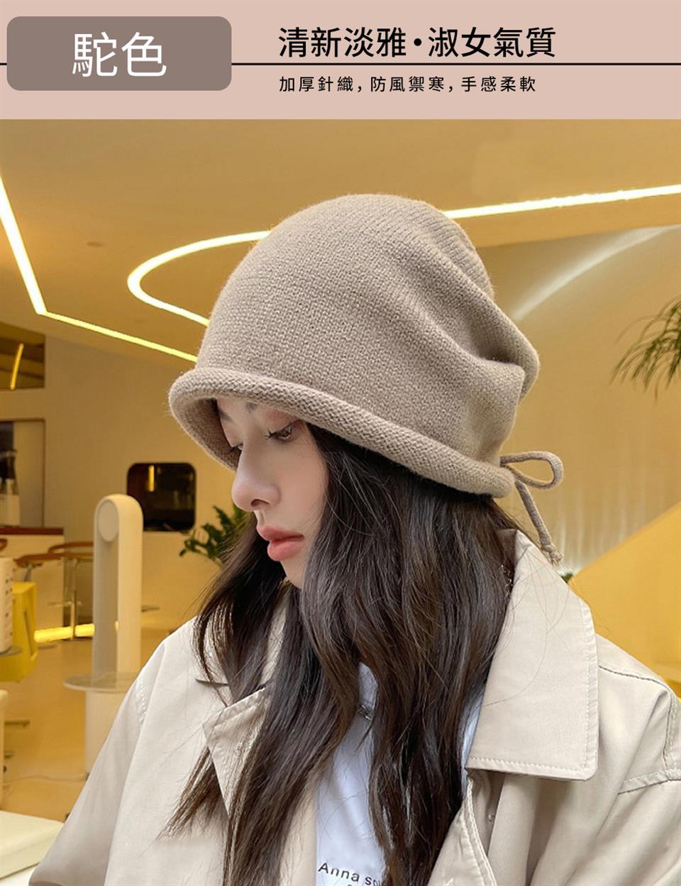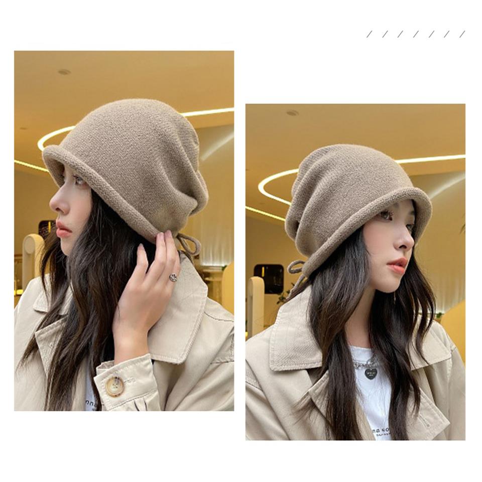 秋冬加厚保暖抽繩抓皺捲邊針織套頭毛帽