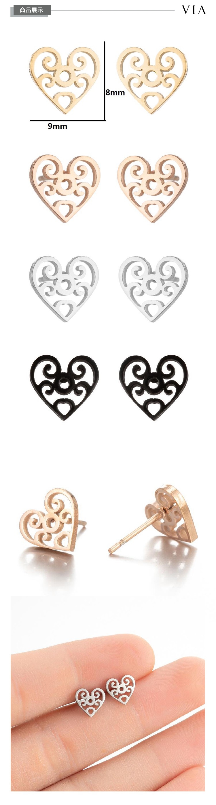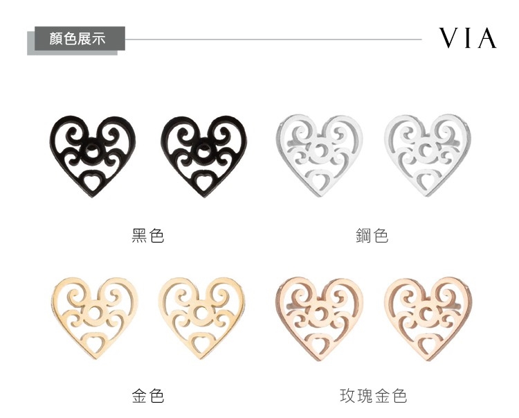 【VIA】時尚系列 縷空愛心花紋造型白鋼耳釘 造型耳釘 鋼色