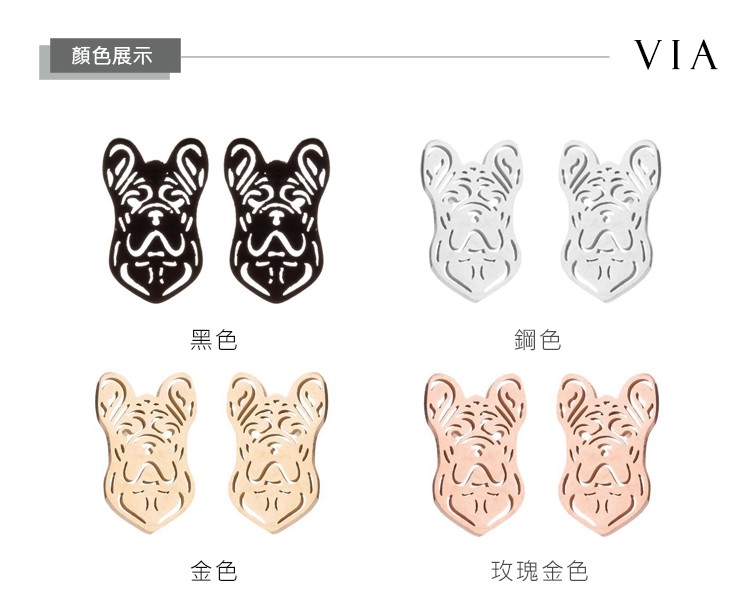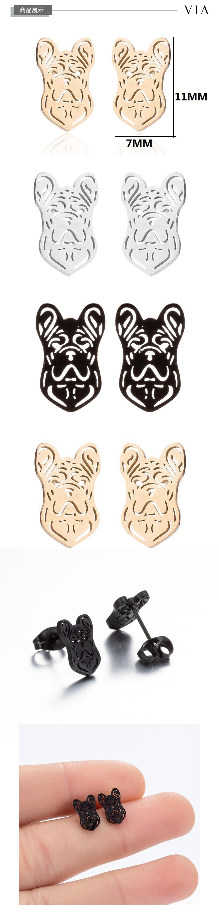 【VIA】動物系列 哈巴狗造型白鋼耳釘 造型耳釘 鋼色