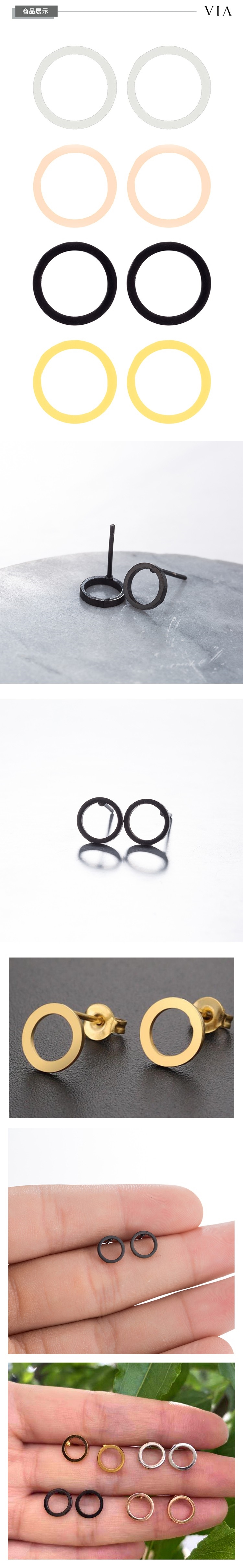 【VIA】時尚系列 幾何縷空圈圈造型白鋼耳釘 造型耳釘 鋼色