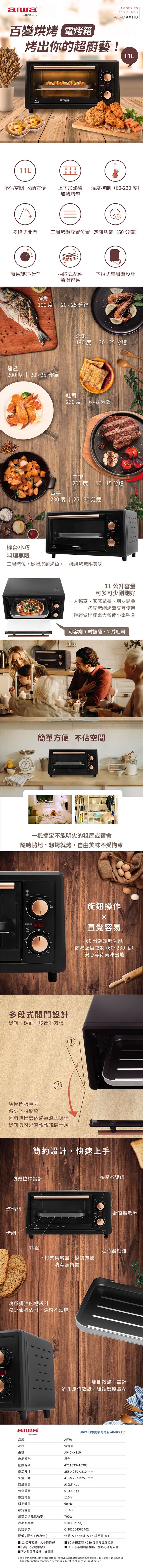 AIWA愛華 11公升定時/定溫電烤箱 AK-DKX110