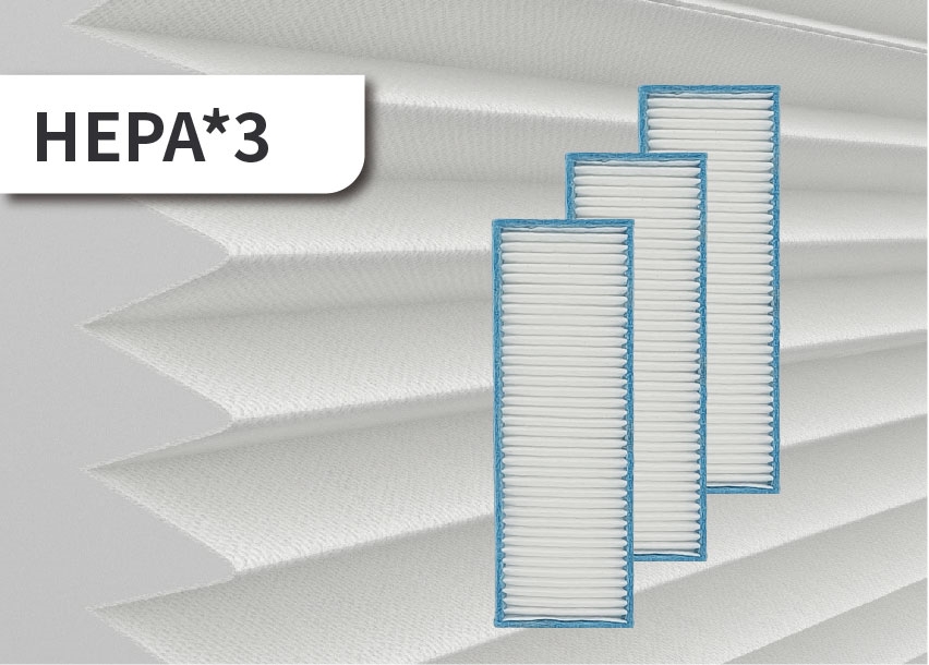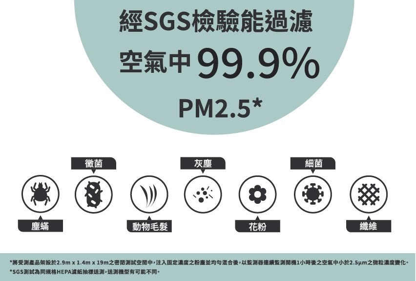 HEPA濾網有效過濾塵霾、灰塵、動物毛髮、PM2.5等空氣中微粒物