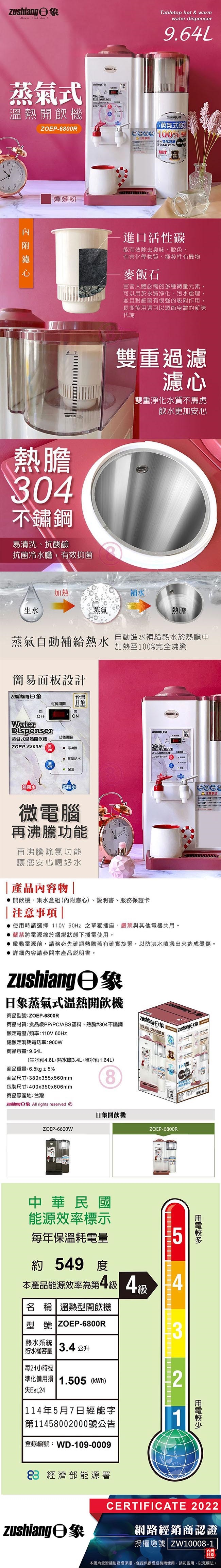 日象 蒸氣式溫熱濾心開飲機9.64L ZOEP-6800R