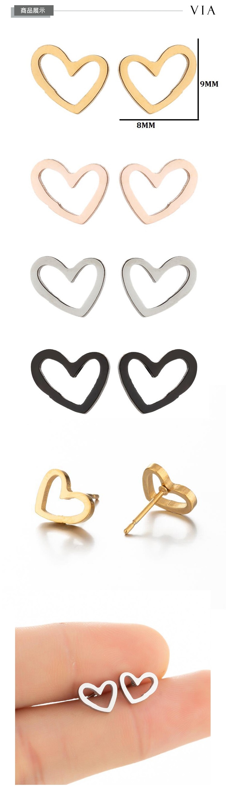 【VIA】符號系列 隨性愛心線條造型白鋼耳釘 造型耳釘 鋼色