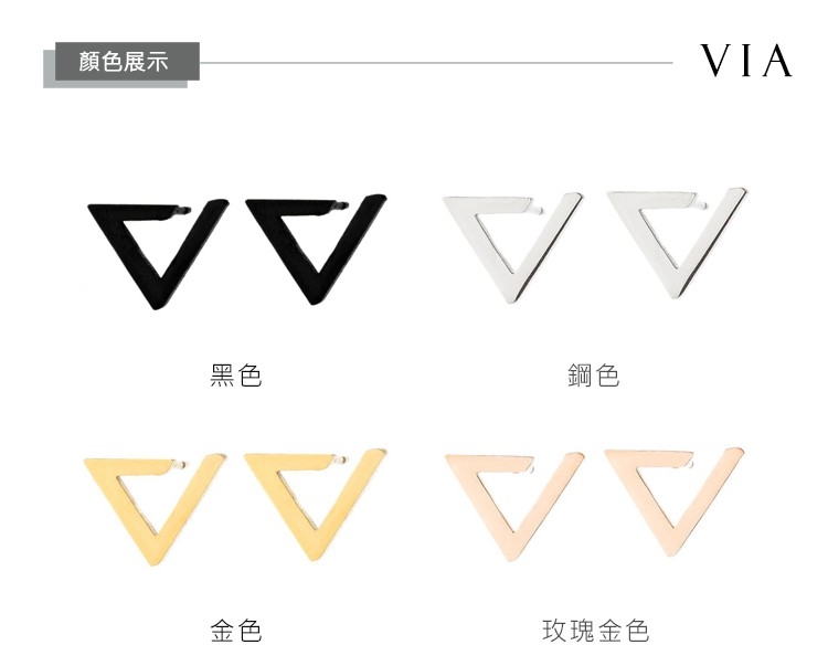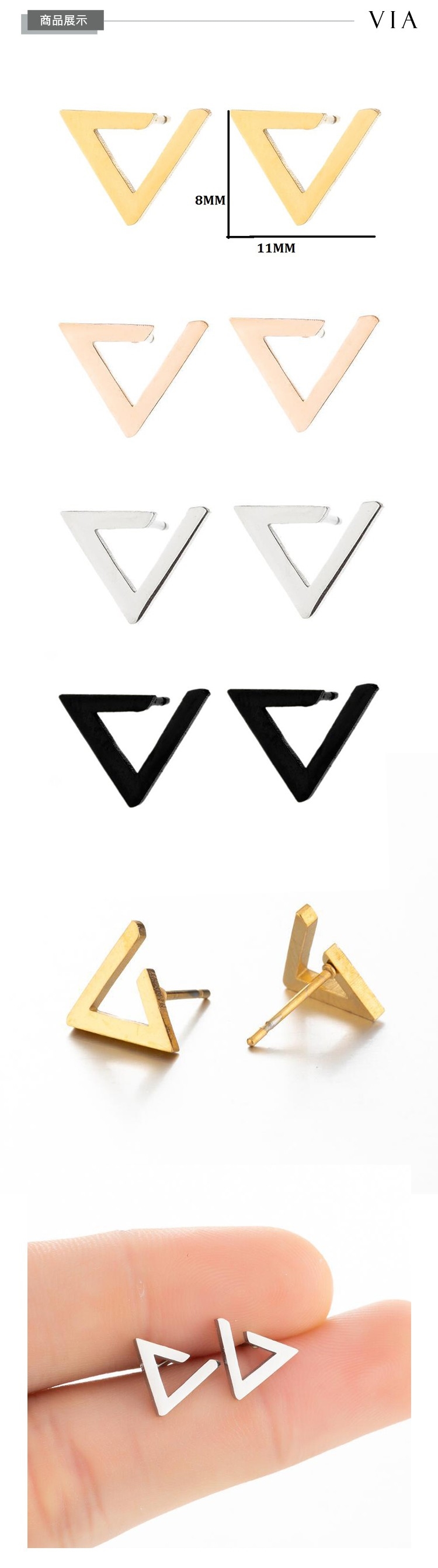 【VIA】符號系列 縷空三角線條造型白鋼耳釘 造型耳釘 鋼色