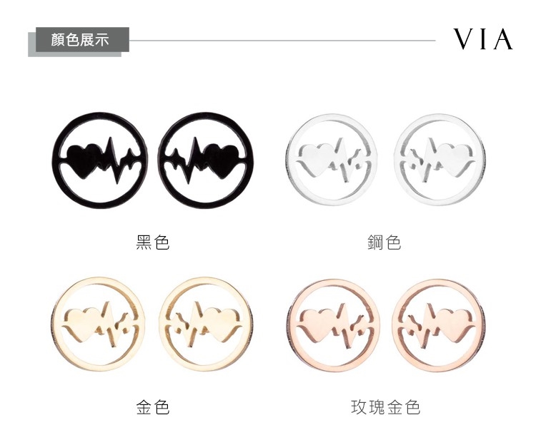 【VIA】時尚系列 縷空線條愛心電波造型白鋼耳釘 造型耳釘 鋼色