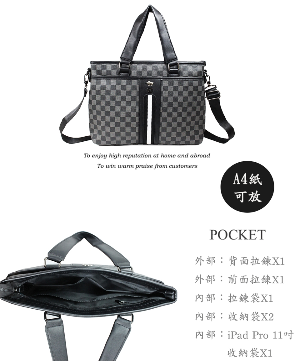 DRAKA 達卡 - Re.Simple系列-超纖皮革方格紋iPad Pro手提斜背包
