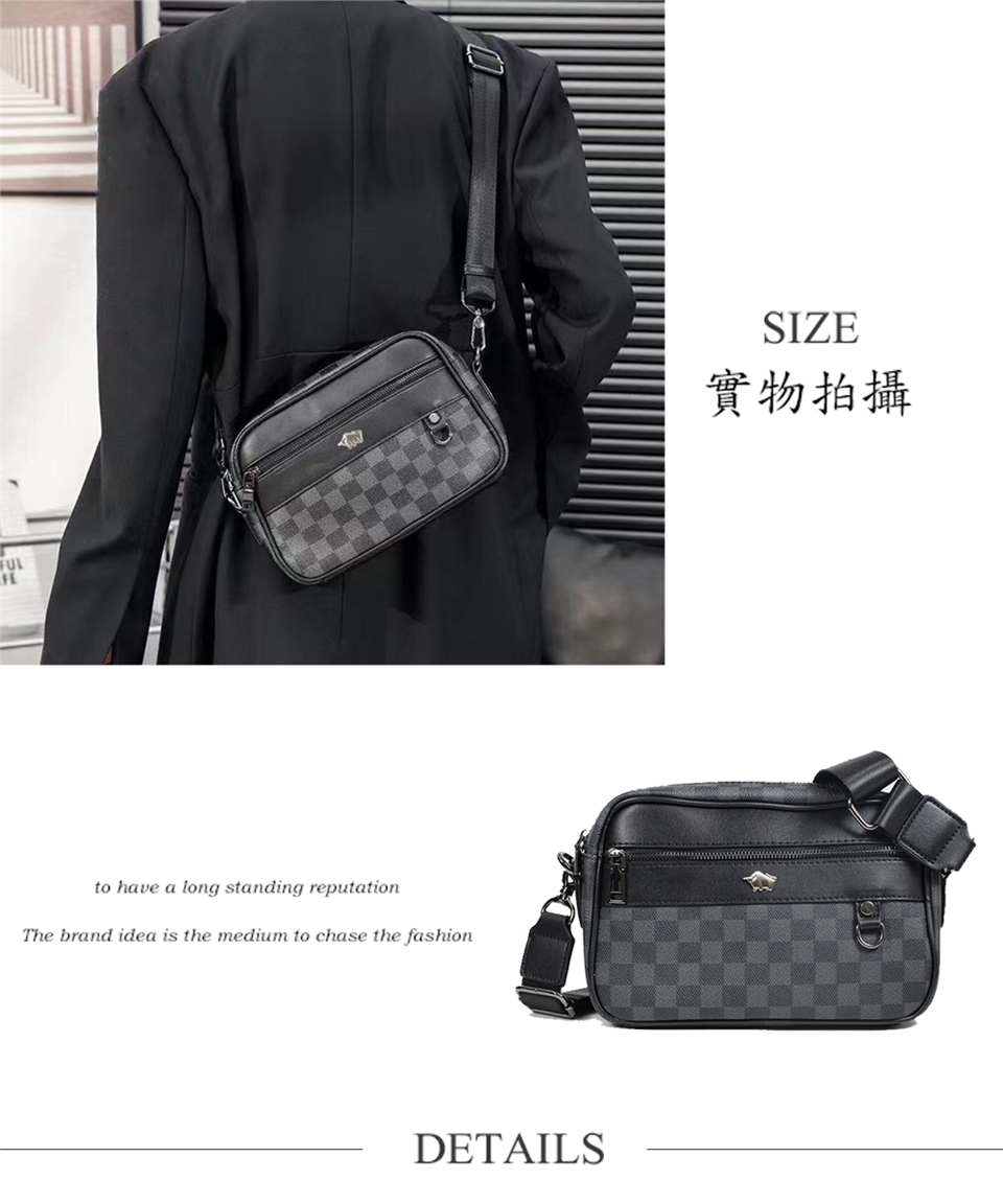 DRAKA 達卡 - Re.Simple系列-超纖皮革方格紋斜背包