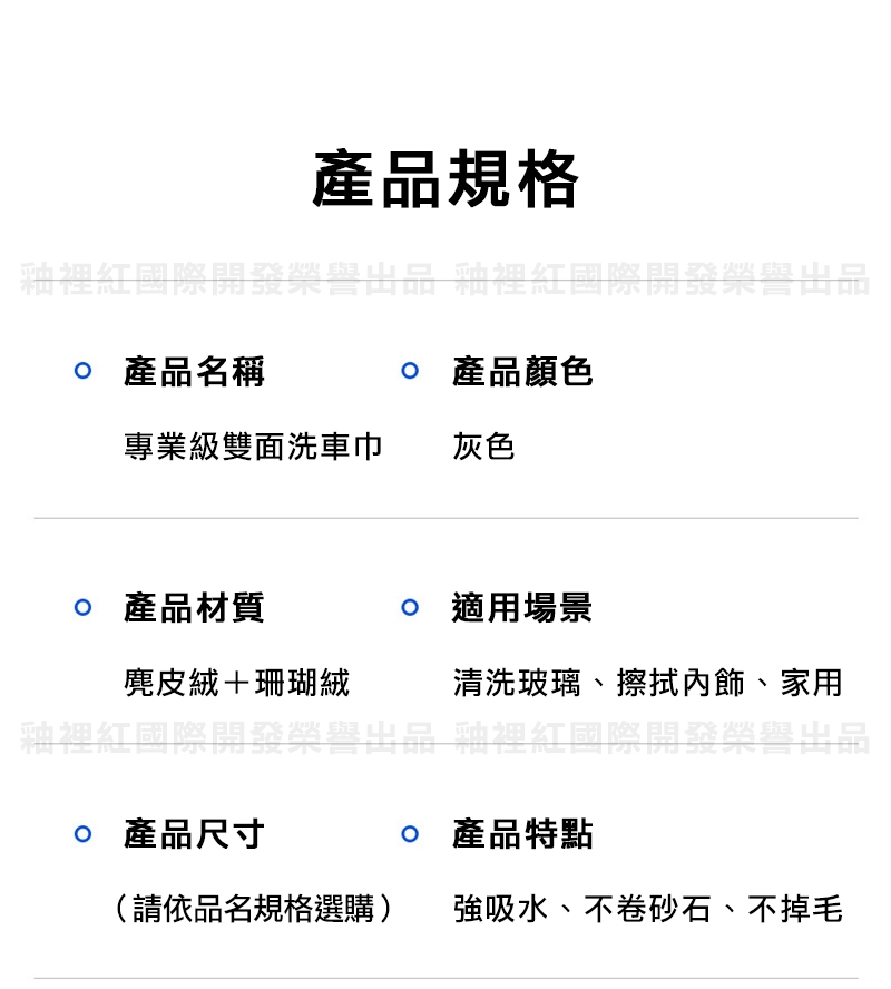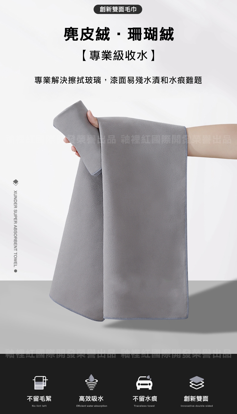 產品名稱:專業汽車美容指定愛用麂皮珊瑚絨雙面洗車巾