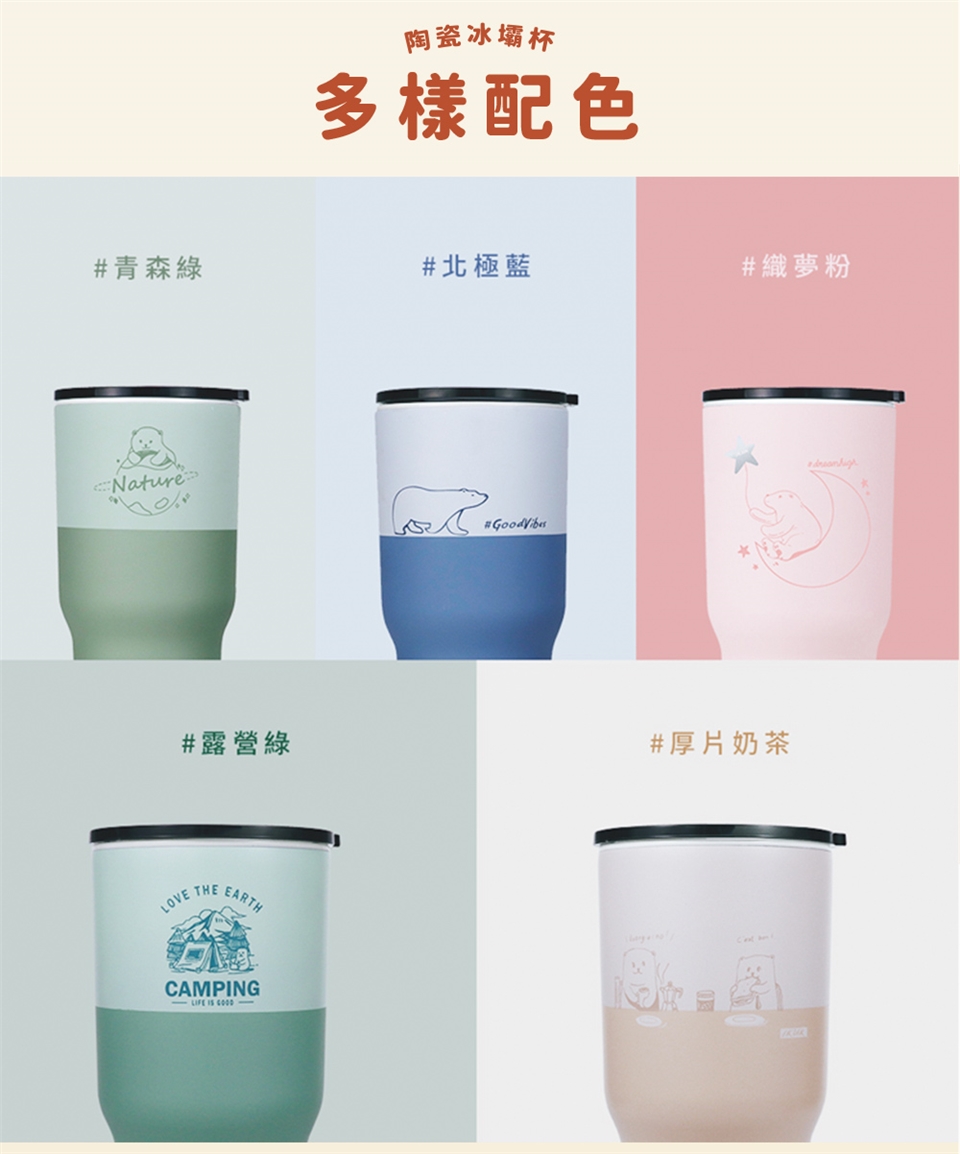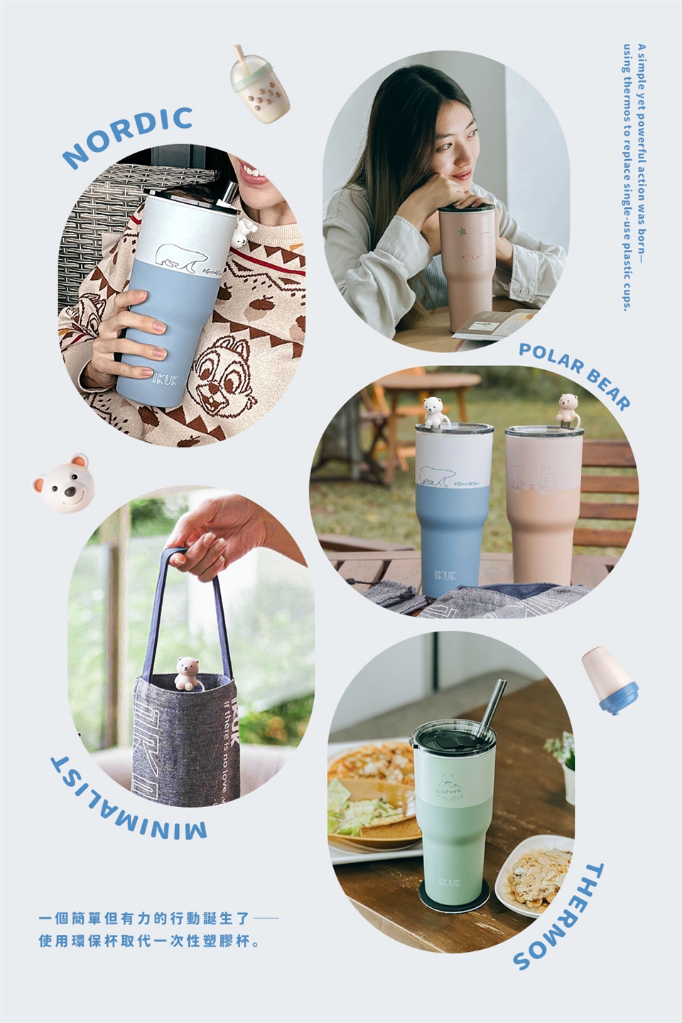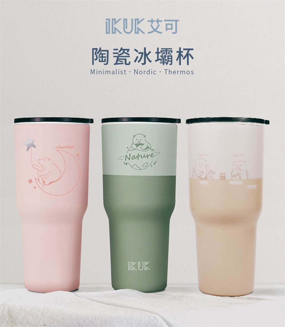 IKUK艾可 真陶瓷保溫杯-真陶瓷吸管杯冰霸杯900ml贈5件組