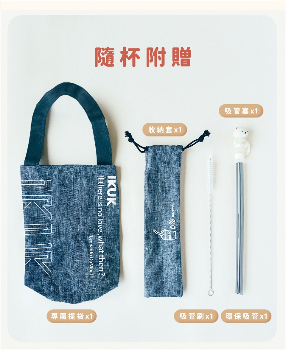 贈品:小熊吸管套、環保吸管、吸管刷、吸管收納套、飲料提袋(放置於紙盒內杯子裡)
