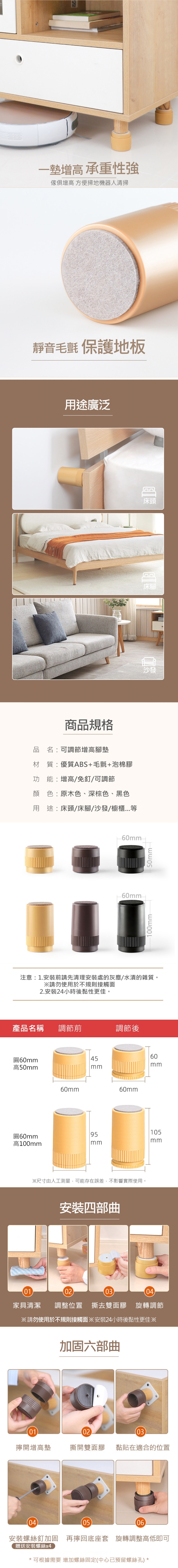品名:可調節增高腳墊/桌腳