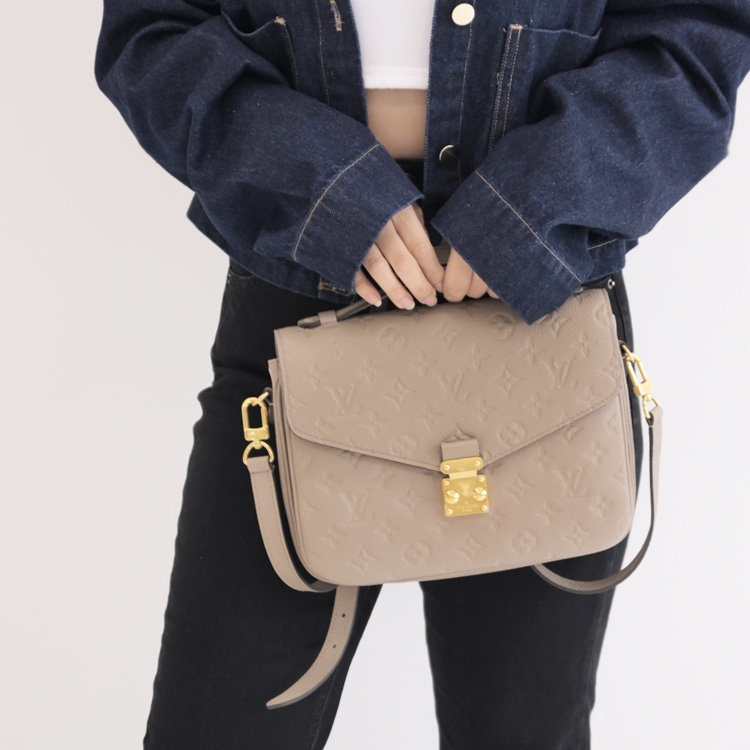 LV 這款時髦的Pochette Métis的二用包,採用柔軟的Monogram Empreinte皮革製作,搭配天然牛皮鑲飾,設計緊湊精巧,整體流滿時尚氣息,內部設有內隔層和口袋,附可調整長度及可拆式斜揹帶,實用性十足,整體展現個人優雅風度,是時尚有型的時搭款式。