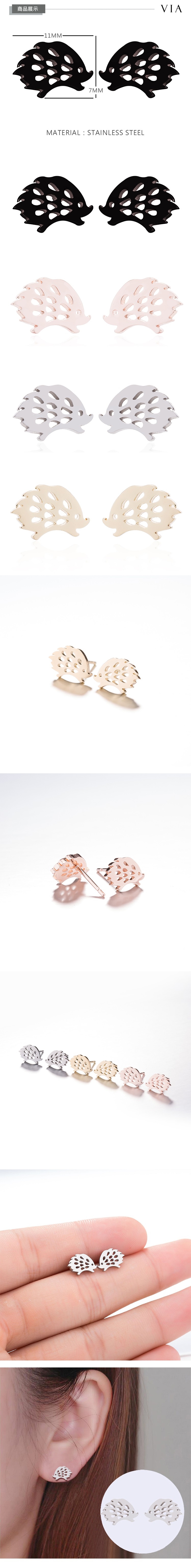 【VIA】動物系列 小刺蝟造型白鋼耳釘 造型耳釘 鋼色