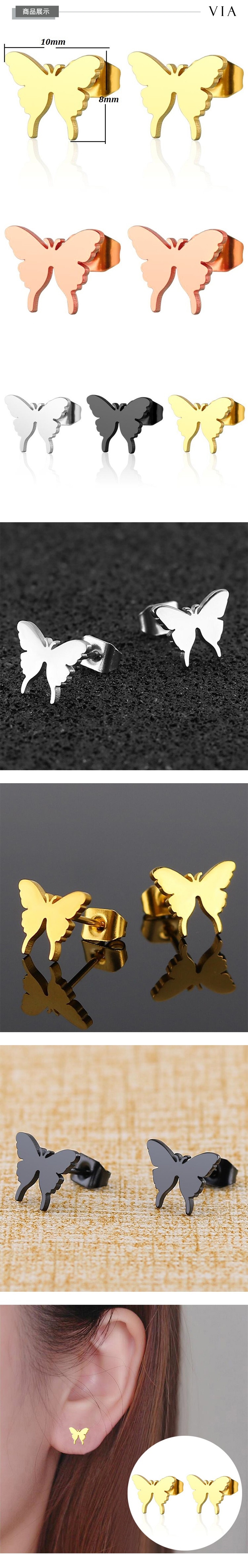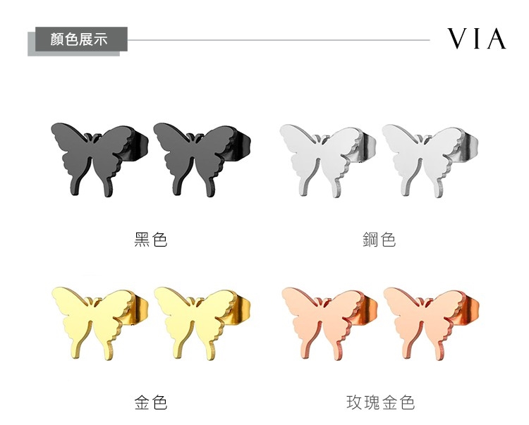 【VIA】昆蟲系列 經典蝴蝶造型白鋼耳釘 造型耳釘 鋼色