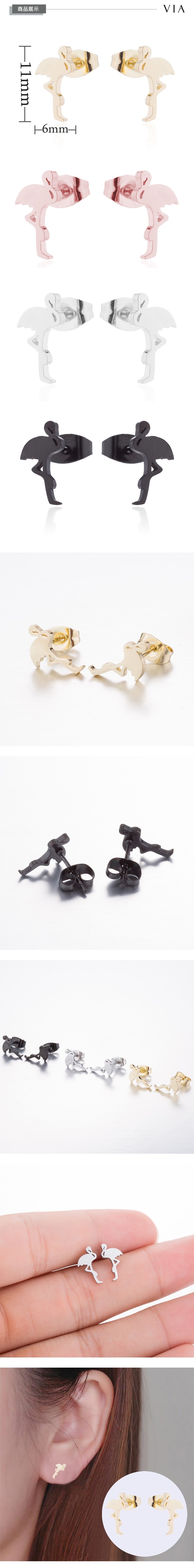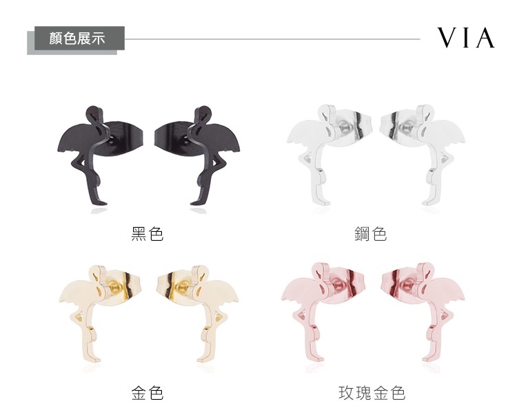 【VIA】動物系列 優雅火烈鳥造型白鋼耳釘 造型耳釘 鋼色