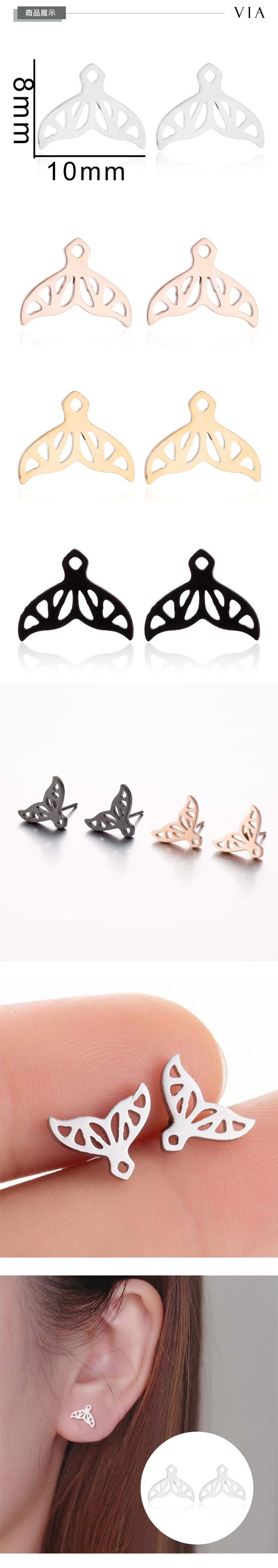 【VIA】時尚系列 美人魚夢幻魚尾造型白鋼耳釘 造型耳釘 鋼色