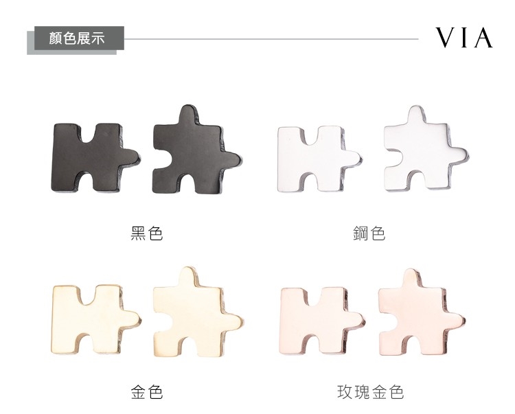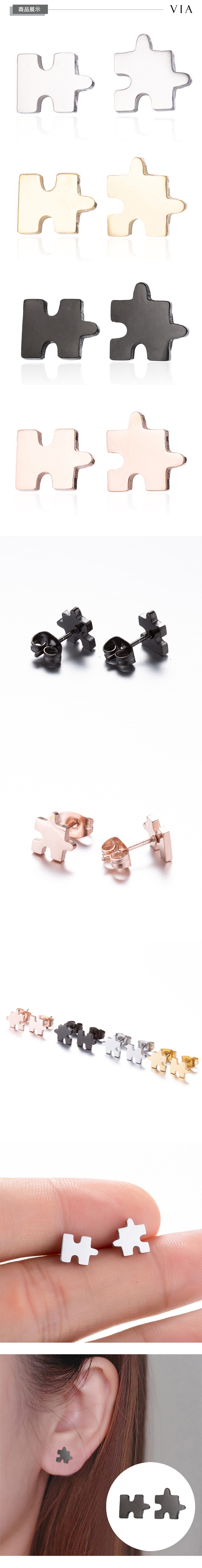 【VIA】時尚系列 迷你幾何拼圖造型白鋼耳釘 造型耳釘 鋼色