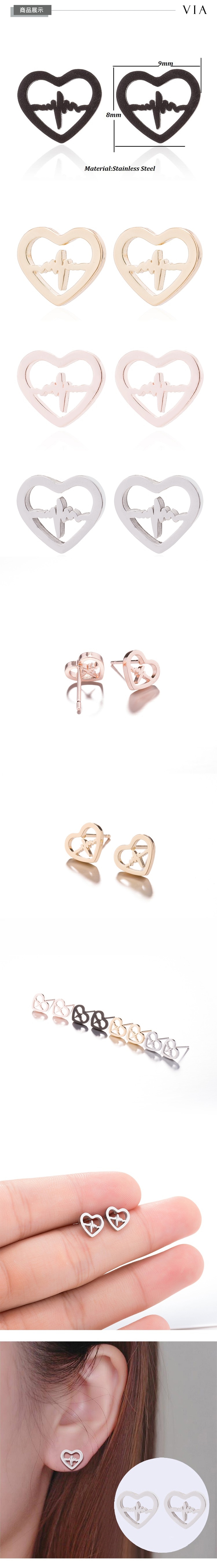 【VIA】符號系列 心跳頻率縷空愛心線條造型白鋼耳釘 造型耳釘 鋼色