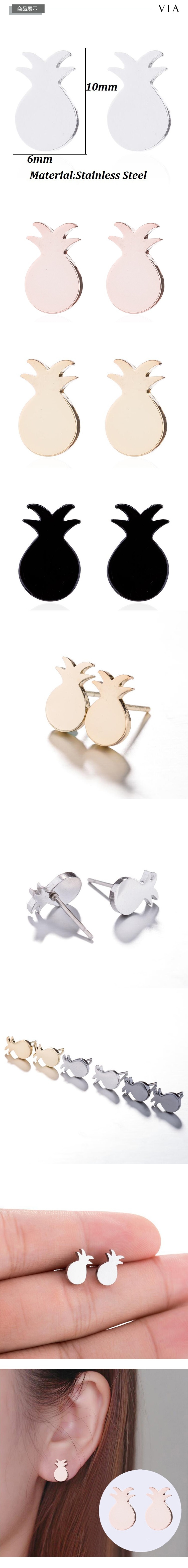【VIA】植物系列 可愛菠蘿造型白鋼耳釘 造型耳釘 鋼色