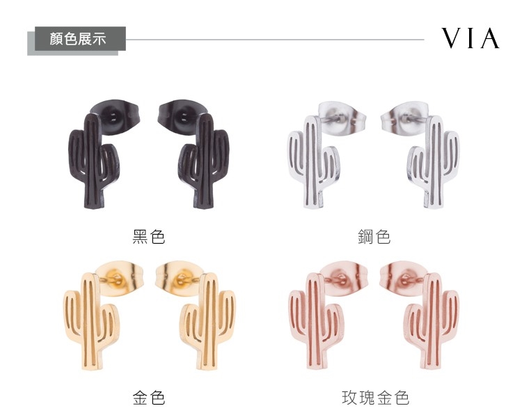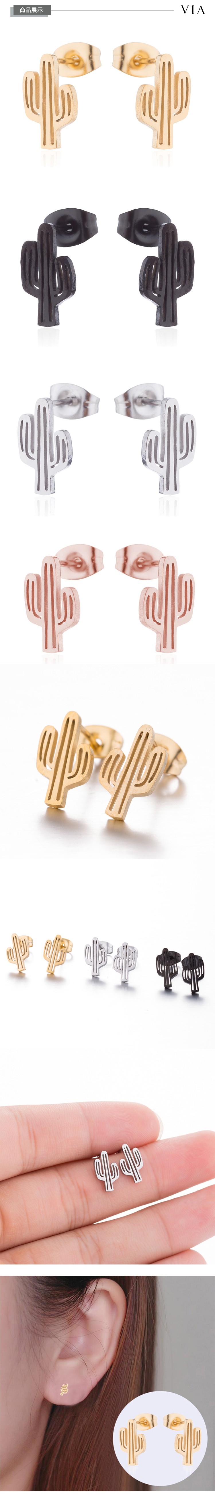 【VIA】植物系列 縷空仙人掌造型白鋼耳釘 造型耳釘 鋼色