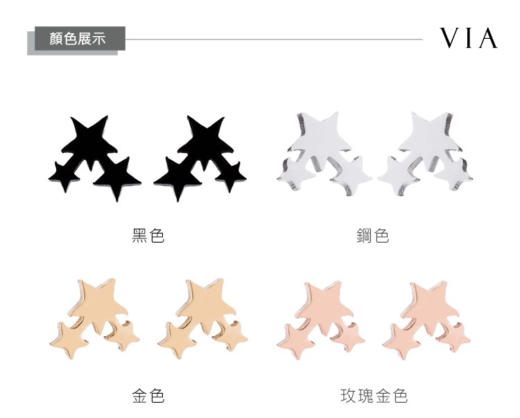 【VIA】星空系列 三顆星星造型白鋼耳釘 造型耳釘 鋼色