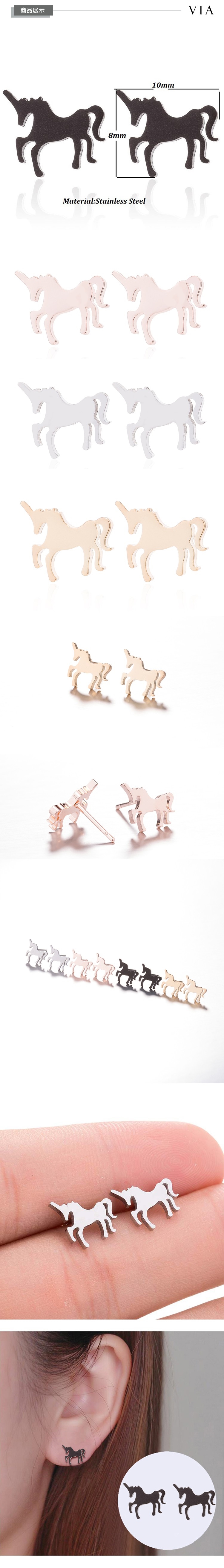 【VIA】動物系列 夢幻獨角獸造型白鋼耳釘 造型耳釘 鋼色