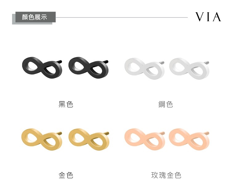 【VIA】符號系列 無限符號造型白鋼耳釘 造型耳釘 鋼色