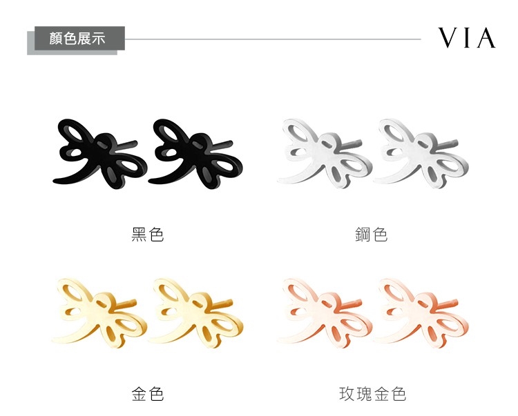 【VIA】昆蟲系列 飛舞小蜻蜓造型白鋼耳釘 造型耳釘 黑色