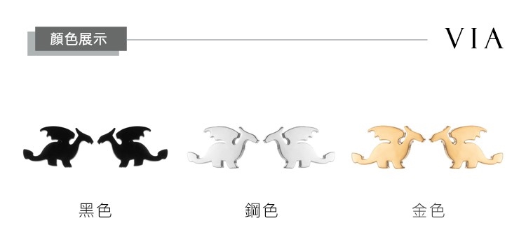 【VIA】動物系列 翼龍造型白鋼耳釘 造型耳釘 鋼色