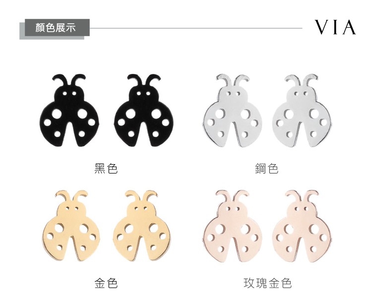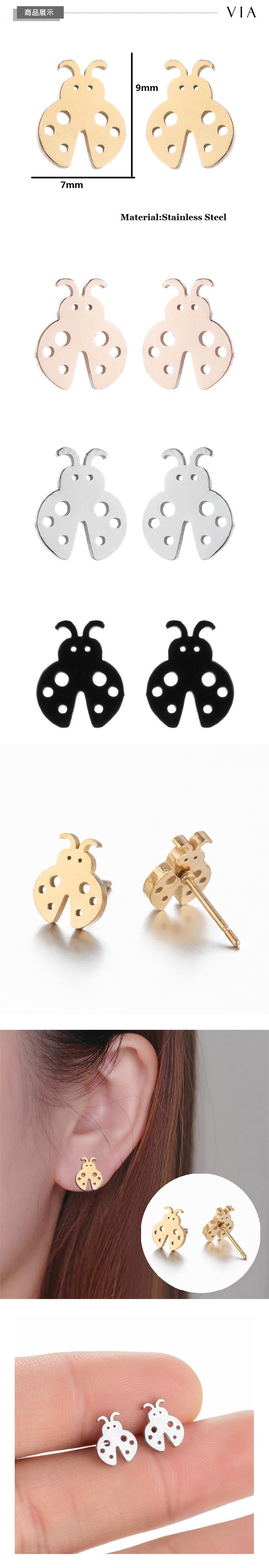 【VIA】昆蟲系列 可愛七星小瓢蟲造型白鋼耳釘 造型耳釘 鋼色