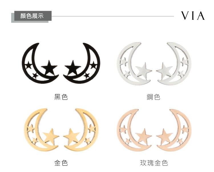 【VIA】星空系列 月亮星星縷空線條造型白鋼耳釘 造型耳釘 鋼色