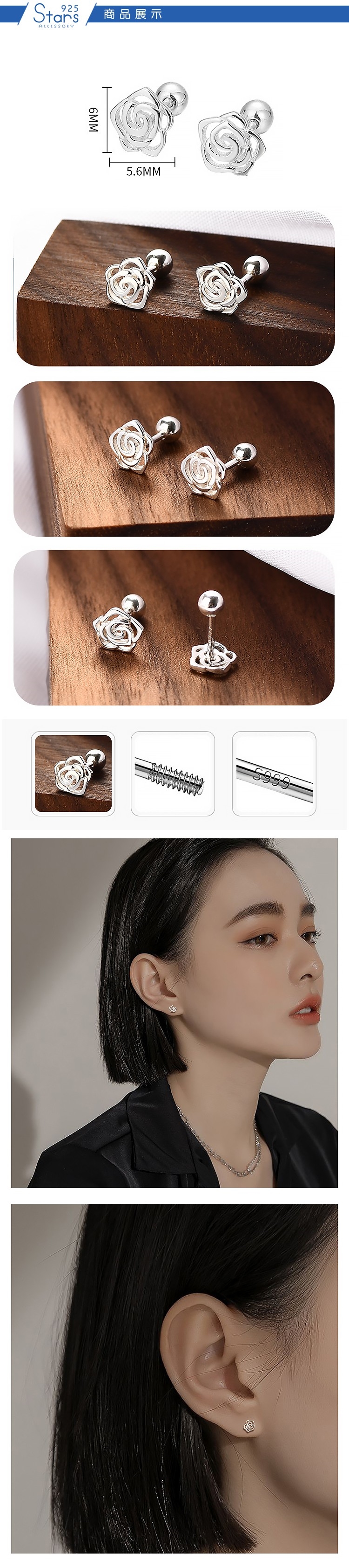 【925 STARS】999千足銀縷空線條迷你玫瑰球針耳釘 造型耳釘