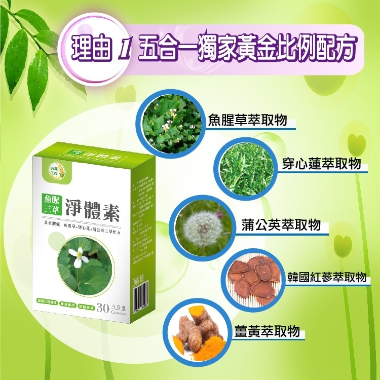 魚腥草+ 穿心蓮+蒲公英五合一獨家淨體配方!!