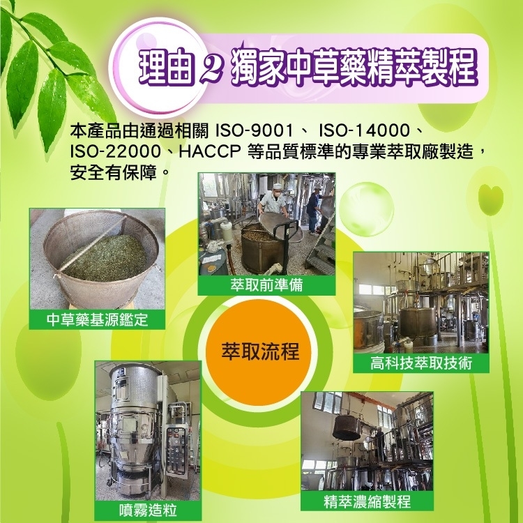 本產品採用獨家中草藥精萃技術,萃取魚腥草、穿心蓮、蒲公英三草精華成分,並複合人蔘萃取物、薑黃萃取物,獨家5合1專業配方,同時搭配素食膠囊,讓素食者也可以安心食用,是一個高科技、高品質、增強保護力的產品。