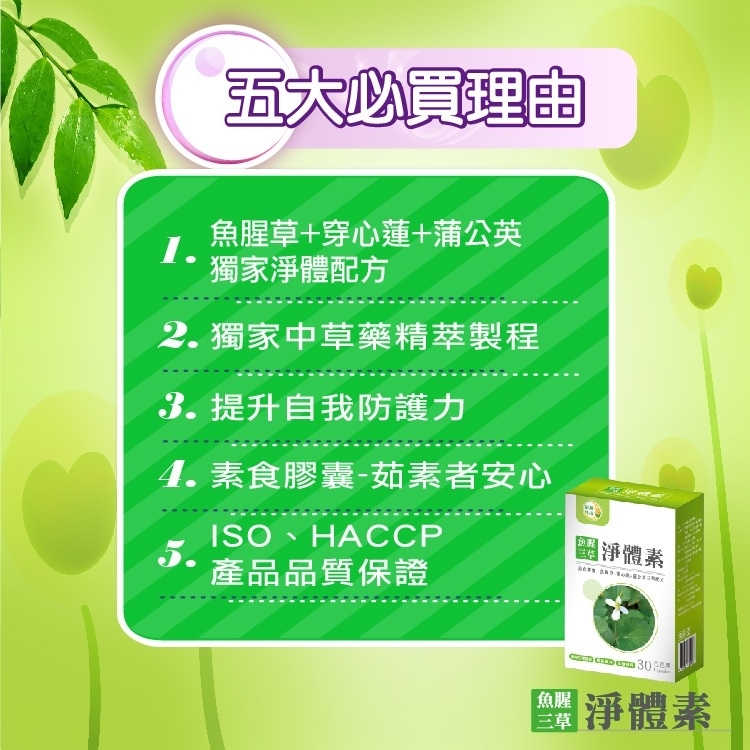 魚腥草+ 穿心蓮+蒲公英五合一獨家淨體配方!!