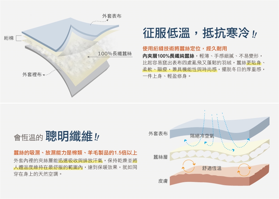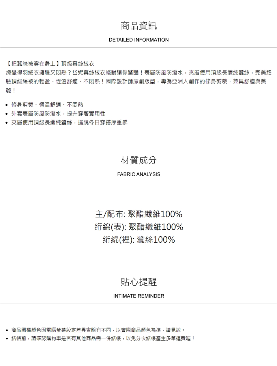 ► 請避免於太陽直射處曝曬,避免蠶絲纖維損壞。