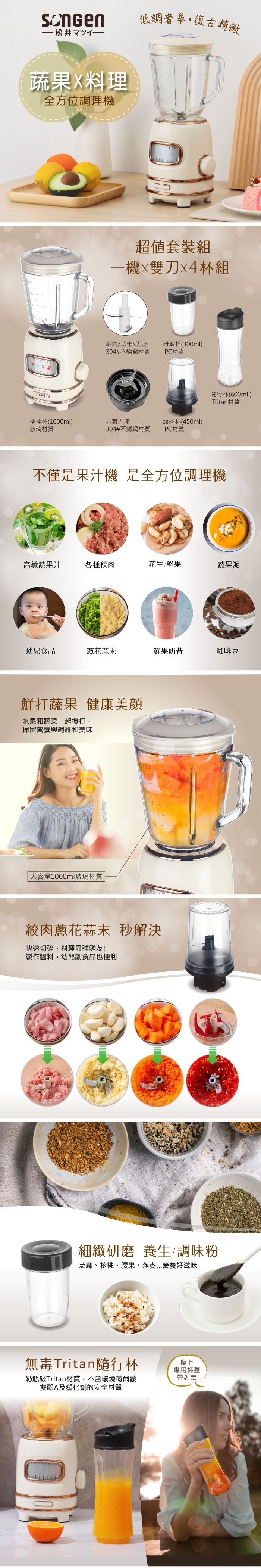 → 4杯組(300ml研磨杯PC材質、450ml絞肉杯PC材質、600ml隨行杯Tritan材質、1000ml玻璃材質攪拌杯)