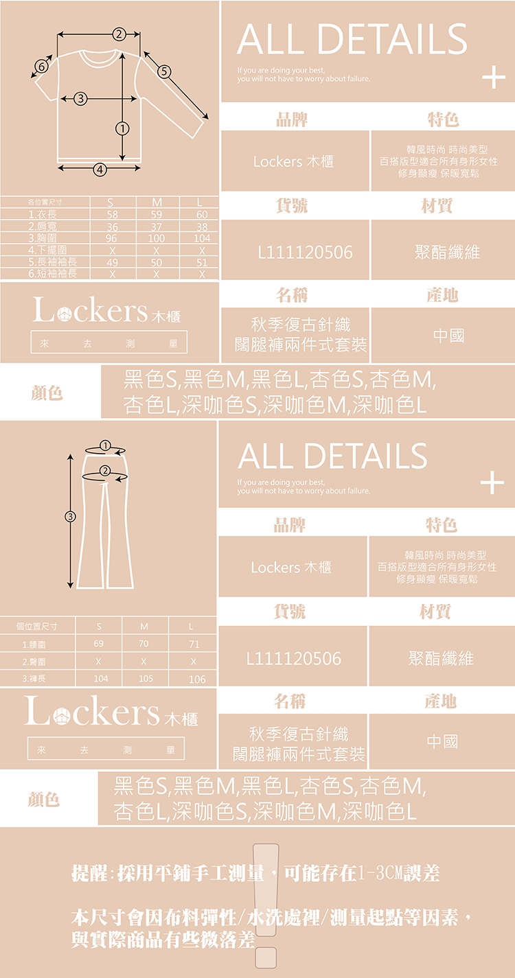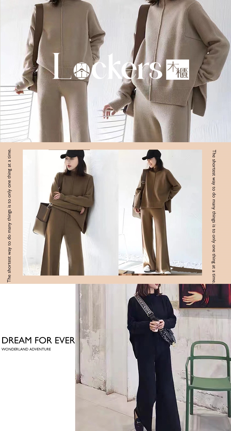 商品內容:秋季復古針織闊腿褲兩件式套裝 L111120506