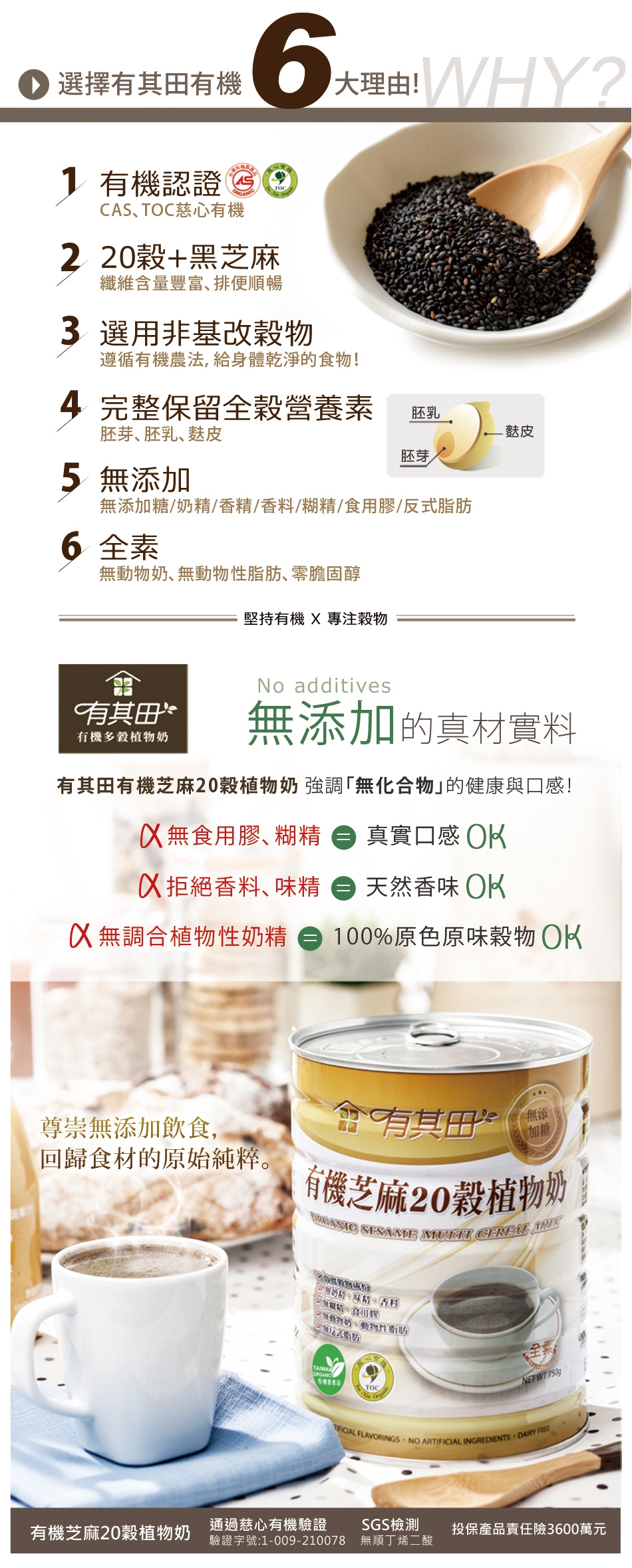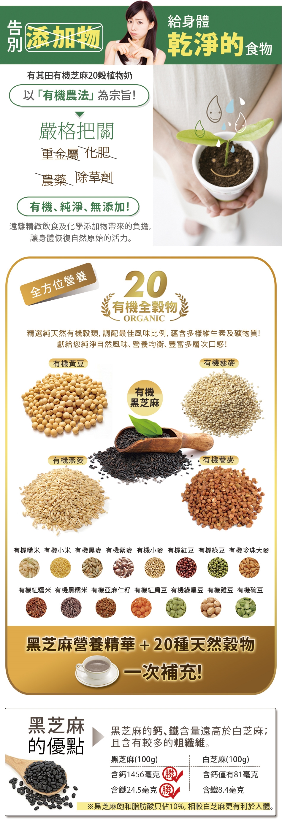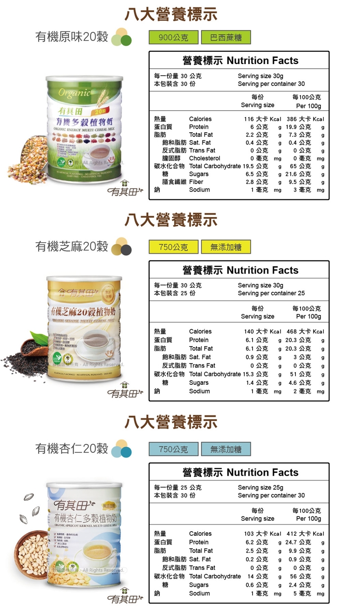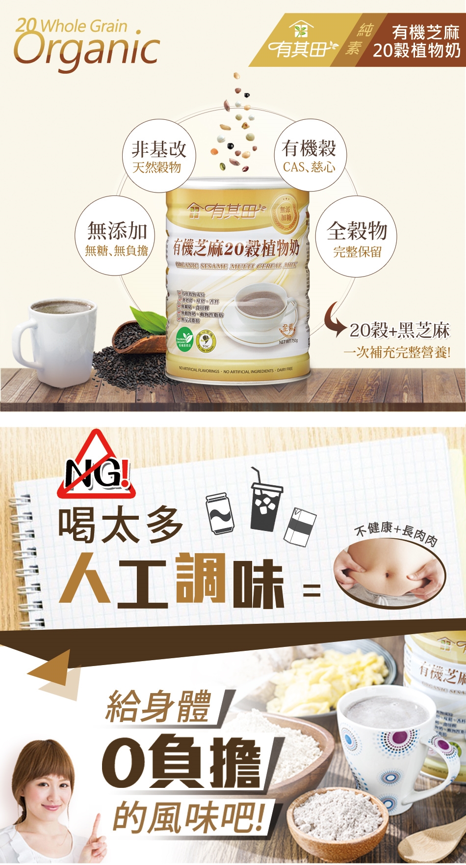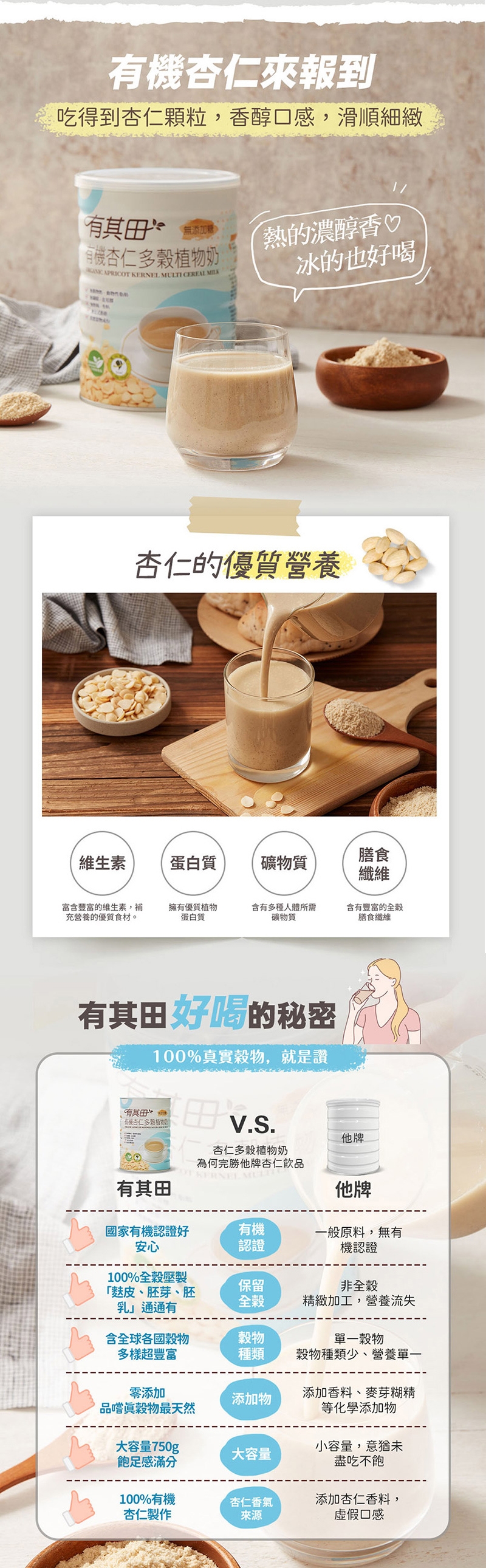 1.熱飲)將30g有其田多穀植物奶加入180~200c.c.的熱開水攪拌均勻,即可享用100%濃、純、無添加的有 機植物奶。