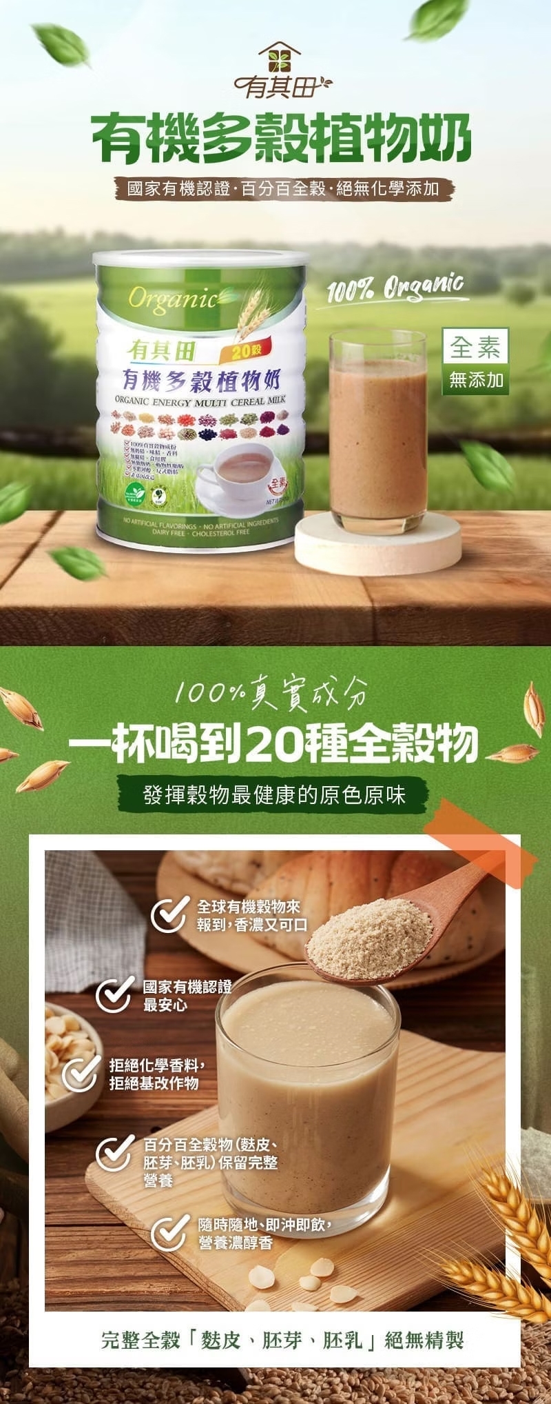 多穀奶:1.熱飲)將30g有其田多穀植物奶加入180~200c.c.的熱開水攪拌均勻,即可享用100%濃、純、無添加的有 機植物奶。