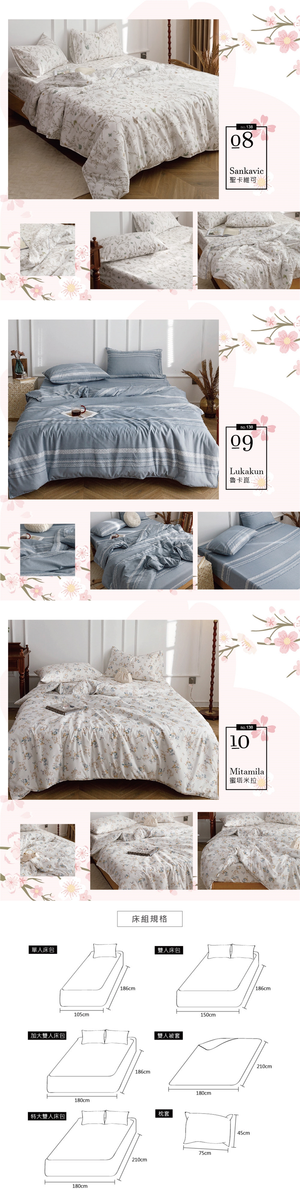 商品詳細介紹 體驗說明 不可體驗 使用方法說明 ◆清洗保養方式:可水洗,可乾洗,不可漂白(建議先將洗衣精/洗衣粉倒入水中,待溶解後再放入寢具洗滌;寢具亦可放入大型洗衣袋再清洗) 注意事項 顏色會因電腦螢幕或拍攝關係與實品略有差異,實際顏色以出貨為主。
