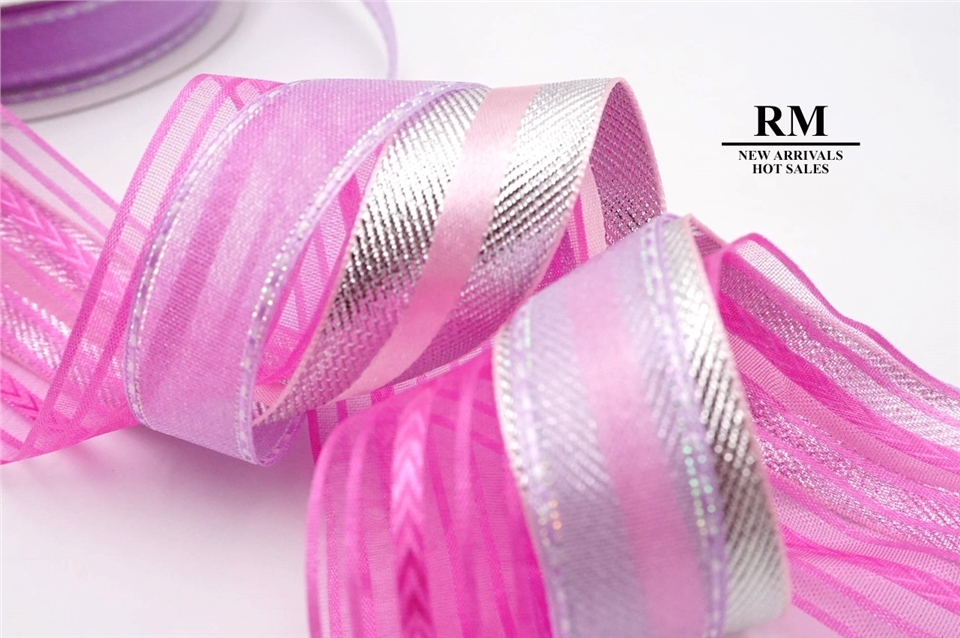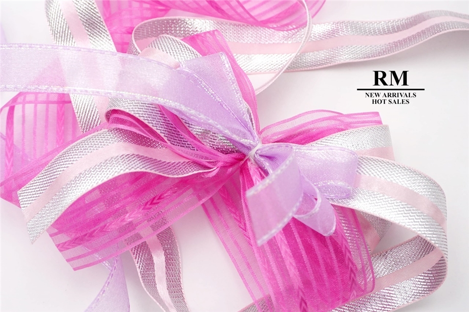 K1347S-5 7/8inch X 25yard(粉色條+銀色)